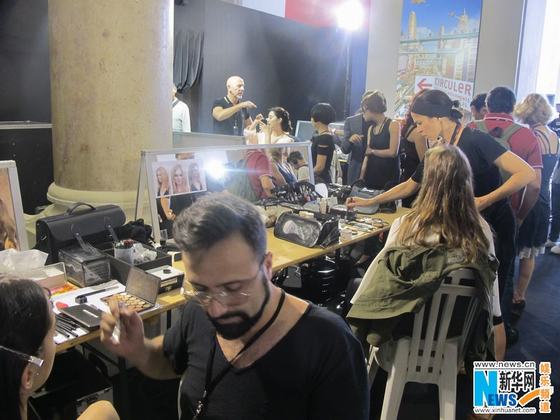 范冰冰巴黎走秀后臺花絮曝光 披浴袍深V露溝化妝(圖)