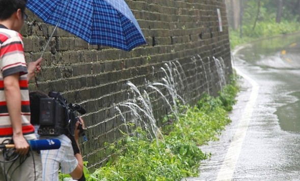 南京暴雨 600年明代城墻現龍吐水奇觀(組圖)