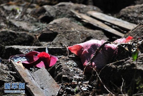 圖為福建壽寧縣車禍事故現場死傷人員遺留的紅拖鞋(7月24日攝)。