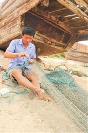 現(xiàn)場 修漁船補漁網(wǎng)捕對蝦