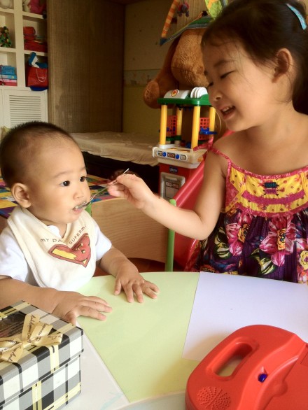 女兒已經會給弟弟違反了