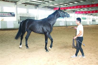據工作人員介紹,這匹馬兒非常珍貴,它血親意義上的媽媽是美國的棗紅色快步馬,爸爸則是法國黑色的賽拉·法蘭西馬,而代孕媽媽加奶媽則是中國的內蒙古馬。這是他們公司經過2年多的科學研究,將胚胎移植技術應用成功的典范。公司先是采集了法國賽拉·法蘭西馬的精液,然后進行保鮮,待美國媽媽進入排卵期后,將卵子也提取出來,然后挑出產自中國的最漂亮的內蒙古馬,將胚胎移植到內蒙古馬的肚子里,經過11個月的成長,本月17日,首匹駿馬問世。
