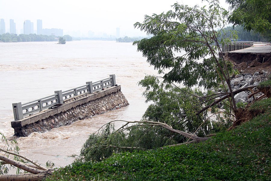 據稱,30日晨黃河蘭州段水流量降至2400立方米每秒,水位下降,不過由于長時間浸泡,黃河護河堤土壤飽含水分,水位下降后,河堤便往外滲水,有多處河堤已出現輕微裂縫。