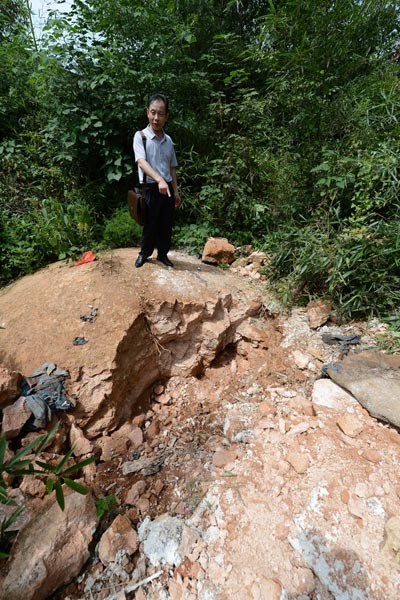 湘潭市博物館館長(zhǎng)盛兆華介紹,當(dāng)時(shí)沒(méi)有水泥,這個(gè)墳是用三合土筑成的。三合土就是用糯米、石灰加黏土按一定比例調(diào)和好做成的,比混凝土的強(qiáng)度還要高。他分析,盜墓人員一定是使用炸藥把墓炸開(kāi)的。