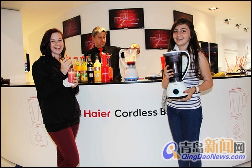 ????經過短暫的采訪記者得知,原來這對兒德國90后姐妹花,來自柏林名叫米婭和蕾娜,都是“果汁迷”,從小就酷愛喝果汁,在展會上看到了這個“奇怪的攪拌機”讓她們久久不能釋懷。“有了這樣的攪拌機,我終于不用害怕家里小孩淘氣而絆到危險的電線了,并且我也好打理多了。”長頭發女孩表示,海爾這款無尾攪拌機所帶來的顛覆體驗完全征服了她。