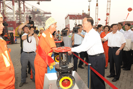 中央書記處書記、中紀委副書記何勇與莊玉坤親切握手