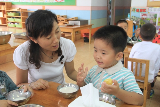 “我們陪著孩子們,觀察他們的言行舉止,在他們有需求的時候,考慮是需要介入?還是提供材料?還是讓他們在同伴的協(xié)助下解決問題?”朱泳形容老師好比是動畫人物“多啦A夢”,能給孩子提供很多很多“道具”,然后作為作為伙伴,陪著孩子一起去體驗各種滋味的人生,幫助他們成長。等他們的身心獲得成長,度過幼兒時期,光榮的“多啦A夢”就圓滿完成自己的使命,帶著欣慰的笑容看著他們步入下一段人生歷程。