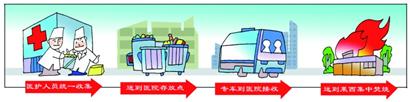 為了確保運輸安全,每輛醫療垃圾運輸車安裝了定位系統,在整個過程中,衛生部要求使用的“醫療廢物轉移聯單”也是保證醫療垃圾處理安全的一個重要手段。五聯單上主要包括醫療垃圾產生單位、運輸單位、接收單位和數量這幾項,由環保局、衛生局、產生單位、運輸單位、接收單位各執一聯,這樣做到醫療垃圾的流向有據可查。
