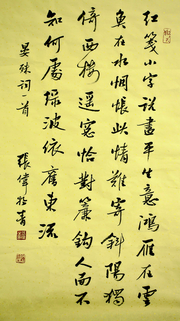 ????紅箋小字,說盡平生意。鴻雁在云魚在水,惆悵此情難寄。