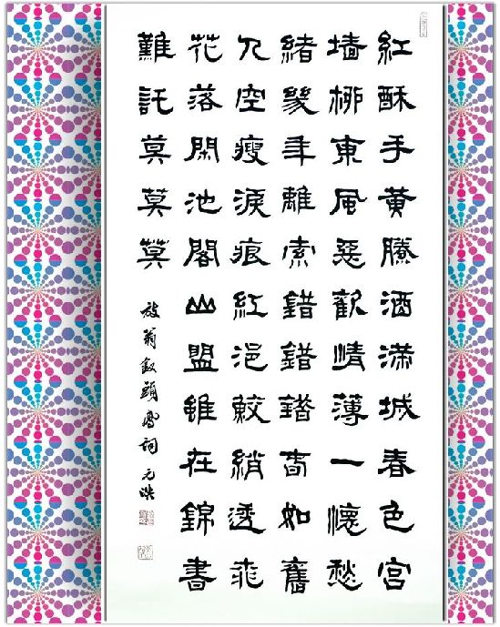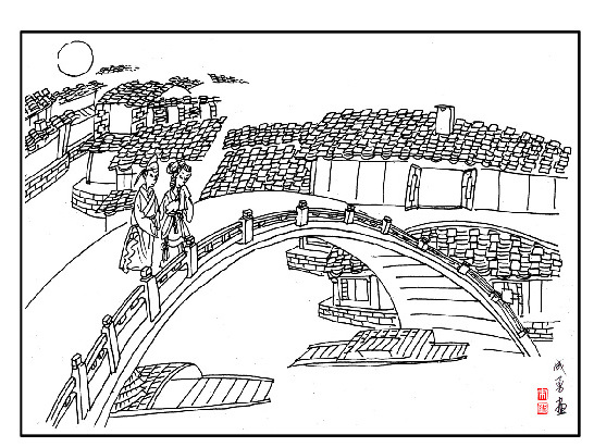????陸園也是張燈結彩,早有親友聚集等待。“云繚繞玉成鸞鳳偕秦晉,紫氣升騰共慶鶯燕譜新曲”、“ 皓月描來雙影雁,寒霜映出并頭梅”。大喜之日,不少親友都攜對聯來賀,金粉鋪底,筆走龍蛇,遣詞造句各出新意。最中陸游心儀的是“日麗風和桃李笑,珠聯璧合鳳凰飛”兩句,拜過天地入洞房時,還貼耳與唐婉私語:“男兒自當西北望,不知鳳凰飛何處?”唐婉順口答道:“自是東南飛了。”話一出口,自覺失言。好在親友嬉笑,人聲嘈雜,陸游沒聽清楚,唐婉也就沒再入心。