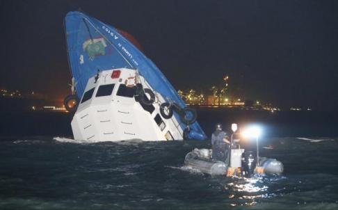 另外,一艘躉船在凌晨駛至南丫島榕樹灣對開的撞船現場,伸出吊臂及吊勾,嘗試打撈,消防蛙人協助將吊勾掛在適當的位置。