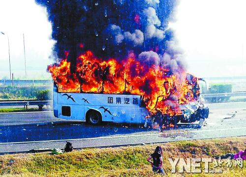 目擊者說,事發(fā)后交警、消防、急救等部門車輛趕來,撲滅了大火,但客車已燒成了空殼,車玻璃均燒得粉碎,現(xiàn)場多人燒焦,看不出男女和相貌。不久客車被拖走,地面被清掃干凈,現(xiàn)場恢復(fù)通車。