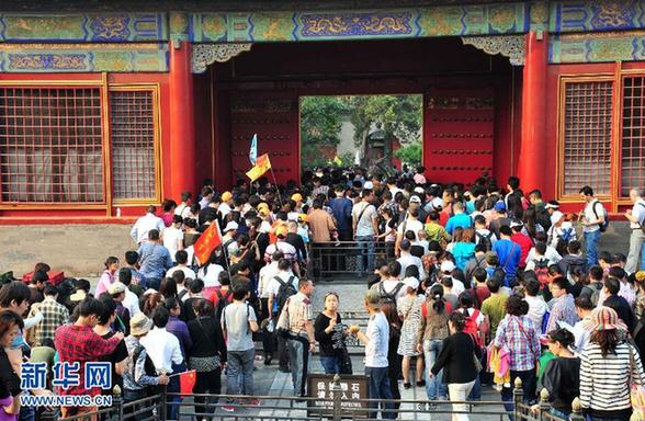 10月2日,大批游客在北京故宮博物院參觀游覽。