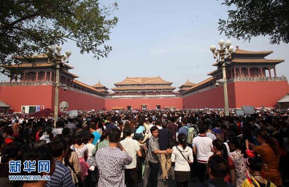 10月2日,北京故宮午門前游人如織。
