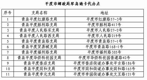 自10月15日起,平度市市民可到平度市長(zhǎng)春路1號(hào)(平營(yíng)路東側(cè)、平度日欣公交公司門(mén)口)琴島通卡客服網(wǎng)點(diǎn)購(gòu)買(mǎi)辦理琴島通