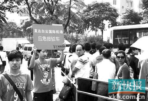 同和站C出口,地鐵公司設置了白云機場應急接駁車。(記者畢志毅/攝)