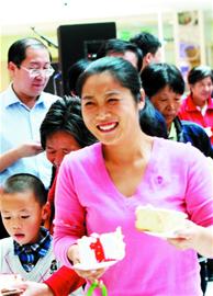 開幕式現場,2000多名市民共同分享了一塊長18米、重800斤的巨型蛋糕。立華園蛋糕店的糕點師告訴記者,為了保證蛋糕的新鮮口味,六個糕點師通宵加班,歷時8個小時才制作完成。市民李女士將一塊蛋糕送入5歲的兒子口中后興奮地告訴記者,自己是青島晚報的老讀者了,前幾天從報紙上看到讀者節活動,今天一大早就從城陽帶著孩子來到現場,除了分享甜蜜蛋糕外,她還給孩子報名參加了讀者節舉辦的兩項少兒活動。