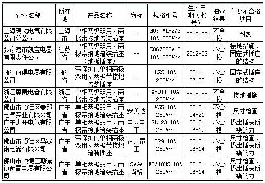 ????國家質(zhì)檢總局近日在其官網(wǎng)公布了插座產(chǎn)品質(zhì)量國家監(jiān)督抽查結果。結果顯示,安美達、申立電工、正野電工、SAGA 尚格等8種產(chǎn)品不合格,涉及到耐熱、接地措施、固定式插座的結構、拔出插頭所需的力、尺寸檢查項目。
