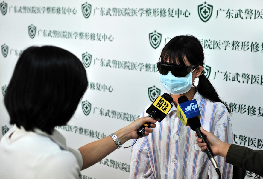 11月8日,廣州,武警醫院修復中心,19歲的小惠(化名)換上病人服。小惠在接受記者采訪。