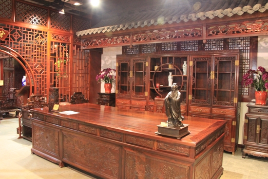 青島新聞網11月11日訊 高檔紅木家具,以其價值珍貴、內涵深遠,一直堪稱家具界的貴族、收藏界的寵兒。昨日,青島“大易紅坊第二屆紅木節”開幕,眾多堪稱藝術珍品的紅木家具紛紛亮相,讓前來參觀的紅木愛好者大飽眼福。其中,最令人驚嘆稱奇的,是一張用3萬年陰沉木制作的八仙桌,估價高達一億零八百萬,稱得上是紅木中