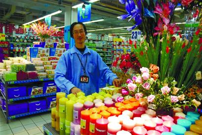 來到范韶華工作的超市,沿著購物通道走一圈,迎面而來的就是一個個商品堆頭:有洗發水、濕紙巾、兒童玩具、飲料、音像CD等等。每天管理、參與這些堆頭的擺放,就是范韶華的日常工作。記者了解到,他現在的工作是超市現場管理組長,剛到超市時,他是從一線促銷員干起的。
