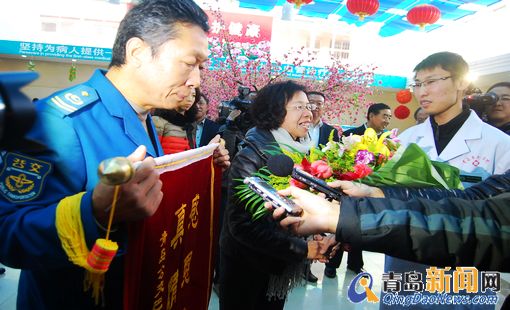 昨天下午,當得知救命恩人找到了,于會海的單位領導也很高興,并陪同于師傅一起,來到青島阜外醫院,當于會海見到袁大夫時,緊緊地握住他的手,再三表示感謝:“我只能用我更加優質的服務來回報關心我的乘客。”于會海還用鮮花和錦旗表達了自己的感激之情。