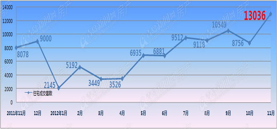 據統計顯示,今年11月青島市新建住宅成交量為13036套,比10月份8756套的簽約量增加了4280套,環比增長了49%;同比去年11月份新建住宅8078套的成交業績增長了4958套,同比增幅超過了60%,從成交量和成交面積上雙雙刷新了2012年度新房成交紀錄,為青島樓市開啟了一段史無前例的“暖冬”之旅。縱觀這一年的青島樓市,迄今為止11月份是年內第二次住宅成交量破萬套,第一次成交量“破萬”出現在“金九”,9月份青島新房成交10549套,當時不少業內人士都歡欣鼓舞,但隨之而來的“銀十”并不樂觀。