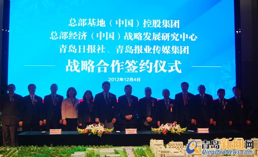 青島新聞網(wǎng)12月4日訊 為響應(yīng)青島市委、市政府發(fā)展藍(lán)色經(jīng)濟(jì)的總體戰(zhàn)略部署,今天上午,青島日?qǐng)?bào)社、青島報(bào)業(yè)傳媒集團(tuán)與總部基地(中國(guó))控股集團(tuán)、總部經(jīng)濟(jì)(中國(guó))戰(zhàn)略發(fā)展研究中心正式簽署戰(zhàn)略合作協(xié)議。青島總部基地總投資110億元,建筑面積260萬(wàn)平方米,將打造輻射華東地區(qū)最大的獨(dú)體獨(dú)棟總部樓群。可入駐企業(yè)總部2000家,實(shí)現(xiàn)年稅收5.5億元。
