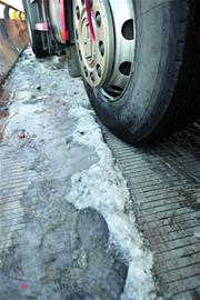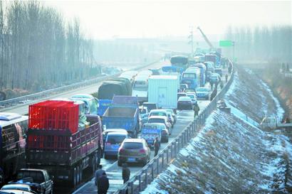 降雪后,高速路上結(jié)了薄冰,又有團(tuán)霧來(lái)?yè)v亂。昨日上午8時(shí)30分許,青威高速150公里處五龍河橋上發(fā)生嚴(yán)重事故,威海到青島方向二十多輛車(chē)連環(huán)追尾。一輛貨車(chē)車(chē)頭變成廢鐵,司機(jī)受傷嚴(yán)重,還有一輛客車(chē)車(chē)廂被撞破,后排女乘客飛出車(chē)廂后差點(diǎn)落入十米多深的橋下;對(duì)向車(chē)道運(yùn)魚(yú)車(chē)原地旋轉(zhuǎn)180°并側(cè)翻,5噸魚(yú)全部?jī)A倒在高速路上……事故造成青威高速青島方向大堵車(chē),車(chē)龍長(zhǎng)達(dá)20公里,而苦等七個(gè)小時(shí)的司機(jī)們靠蘋(píng)果充饑。