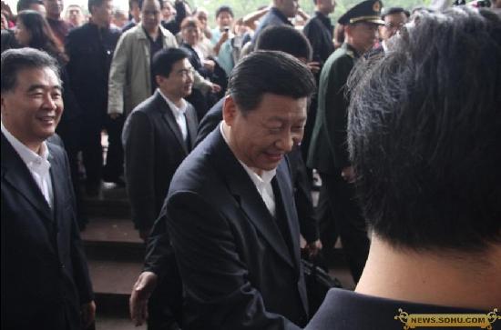 習近平與民眾握手。