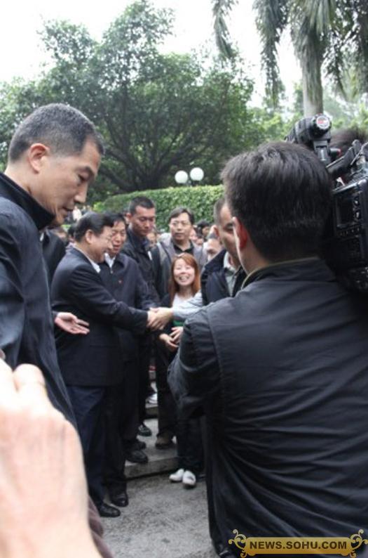 ????12月8日,習近平來到深圳蓮花山,向鄧小平雕像敬獻花籃,除了廣東現任官員陪同之外,四位曾經陪同鄧小平南巡的老同志也有出席儀式。圖為習近平與民眾握手。