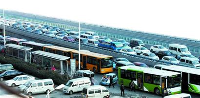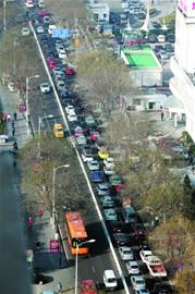 昨天早晨8時許,記者在山東路和敦化路路口看到,山東路上北向南的車輛已經排起了長隊,特別是從撫順路到延吉路之間的這段路上,車頭接車尾。遼陽西路東向西方向也是如此,堵得幾乎動不了,延吉路東向西方向從南京路到山東路路段也是排滿了等待通過的車輛。