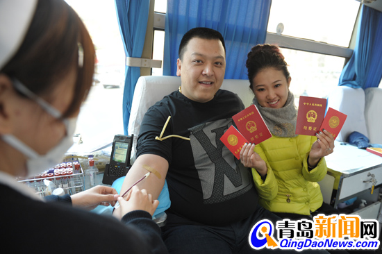 ????青島新聞網12月12日訊??“我們倆為了趕在世界示愛日這一天登記結婚,凌晨四點就過來排隊了。”一對新人在四方婚姻登記處告訴記者,這對新人領完證后剛從婚姻登記處出來,就上了停在門口的獻血車上,以無償獻血的方式紀念領證結婚。???