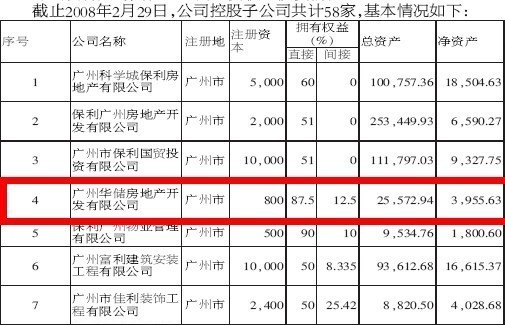 ?在一番調查之后,記者找出了2008年刊登在國內某權威媒體上的《保利房地產(集團)股份有限公司公開發行公司債券募集說明書摘要》,在這份說明說書中廣州華儲房地產開發有限公司赫然在列。