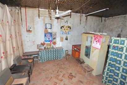 記者透過門上破碎的擋風玻璃看見了周元武家中的情況:兩個斑駁的柜子將客廳一分為二,后面擺著兩張空床架子,連床板都少了兩塊;不到20平米大小的客廳內,擺著兩張木沙發,上面布滿了灰塵,里屋有個燭臺,上面擺著兩個杯子。記者發現,周元武家中僅有的家用電器是一個白熾燈和吊頂電風扇。