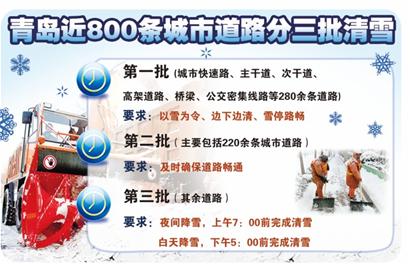 據了解,市清雪指揮部辦公室將主要的近800條城市道路分為三批進行清雪工作。第一批清雪道路包括城市快速路、主干道、次干道、高架道路、橋梁、公交密集線路等280余條城市道路,要求相關責任單位在專業化清雪隊伍的清掃下,以雪為令、邊下邊清、雪停路暢;第二批清雪道路主要包括220余條城市道路,要求各清雪單位及時確保該時間段道路的暢通;其余道路,各責任單位按照清雪方案要求進行清理,夜間降雪要求在上午7:00前完成清雪,白天降雪要求在下午5:00前完成清雪,確保整個城市在早晚兩個高峰時段交通暢通。