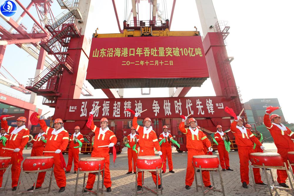 青島港新聞中心訊 12月12日上午,山東沿海港口年吞吐量突破10億噸慶典在青島港集裝箱三期碼頭隆重舉行。山東省交通運輸廳專門發來賀信,高度肯定青島港為全省港航事業所做出的杰出貢獻。山東省港航局黨委副書記、紀委書記張德全宣布慶典儀式開幕并宣讀賀信。山東省海員工會主席馬驥,青島市交通運輸委副主任邢昌友,省內沿海兄弟港口代表出席儀式。青島港集團黨委王論誠書記出席儀式并講話。青島港一線職工代表在儀式上宣讀倡議書。青島港集團焦廣軍副總裁主持儀式。