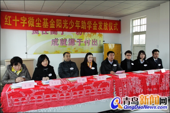 紅十字微塵基金攜手青島萬達百貨發放“陽光少年助學金”儀式12月20日舉行 ????2012年12月20日,紅十字微塵基金攜手青島萬達百貨在青島即墨龍泉中心小學舉行了“陽光少年助學金”發放儀式,據悉,本次青島萬達百貨所捐贈22000元善款將資助大約45名家境貧困的學生。 ????據青島萬達百貨前勤副總楊倫介紹,在青島萬達百貨3周年店慶之際,由青島萬達百貨聯合青島紅十字微塵基金共同主辦的 “關注陽光少年——慈善公益拍賣會”,共籌集善款22000余元,并捐贈給青島紅十字微塵公益基金“陽光少年”助學項目,用于資助他們順利完成學業。