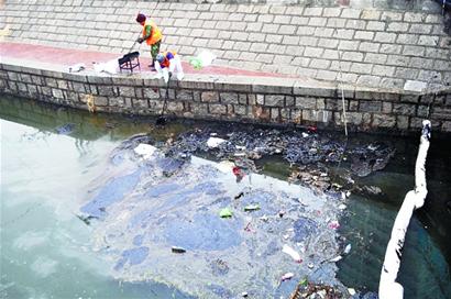 ????“截至目前,我們已經清理了五六噸污油。剛開始,我們集中在古力口處清理。后來污油淌進河里,我們又沿河進行清理。事發后流到下水道里的污油至少有10噸,要想清理干凈還需要一段時日。”這名施工負責人介紹。