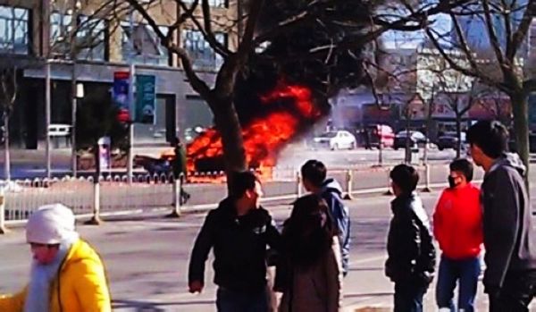 目擊者回憶,汽車瞬間冒起了滾滾濃煙,并燃起大火,有過路的車輛司機試圖用車載滅火器撲火,但無濟于事。在汽車燃起的火苗中,不時傳出震天的鞭炮聲,據了解,駕車男子將鞭炮和一只煤氣罐放在了后備廂當中。消防官兵趕到后將大火撲滅,并將煤氣罐搶出,而吉利轎車已經燒成了空殼,被警方拖走。 |