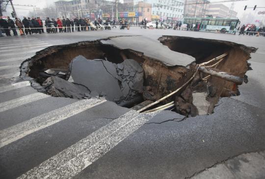 在山西省太原市并州路與并州西街交叉路口拍攝的塌陷現場