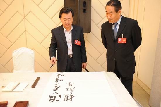??? 下午3點整,黃海飯店里墨香四溢,政協委員們在這里舉行書畫筆會,盡展才情贊美青島。市政協副主席邵峰晶、李學海到場,與藝術家們親切交流。