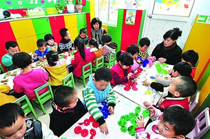 昨天下午3時,延安二路幼兒園小班的孩子們剛剛睡完午覺,50多歲的張老師和40多歲的史老師引導他們玩玩具、做游戲,見到孩子們把玩具拼成了高樓、花籃等各種形狀后,老師們伸出大拇指夸贊孩子。現(xiàn)在幼兒園共有大、中、小三個班,接收了50多名孩子,由6名老師負責,每天教孩子們關于語言、共同生活、探索求知、美術等方面的內容。