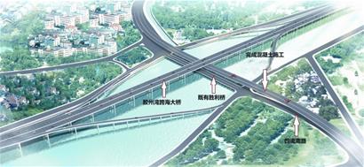 ????晚報訊 昨日,記者從青島城投集團獲悉,膠州灣大橋高架路最后一部分工程--四流路跨線橋昨日完成最后一聯箱梁澆筑,實現主體貫通。預計今年6月份,這一工程將竣工通車。而屆時,膠州灣大橋高架路也將全部建成投入運行。