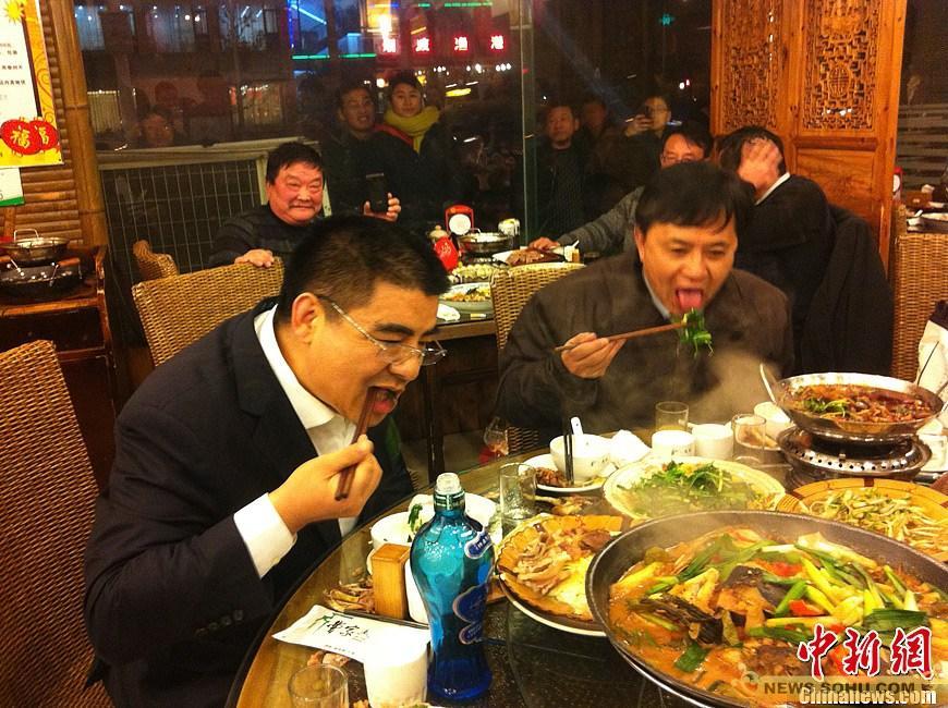 1月25日晚,江蘇黃埔再生資源利用有限公司董事長陳光標率領其公司40名員工來到南京街頭一飯店吃剩飯、剩菜。在出發前,陳光標不僅給員工開了“動員大會”,還給每個員工發了一雙筷子,并強調:“說百遍不如做一遍”。陳光標表示,從明天開始其公司食堂不燒晚飯,鼓勵員工走上街頭飯店吃剩飯、剩菜,希望能夠以點帶面,讓更多人節約糧食和水電。黃鸝攝