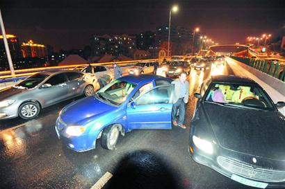 昨天下午4時左右,記者乘車沿著江西路前往福州南路,在距離路口大約100米的位置,車輛基本停止不前,等候了五個信號燈后才緩緩通過。下午5時10分,記者乘坐202路公交車,拐上江西路之后,前方車輛動彈不得,公交車干脆熄火在原地等待。大約有十名乘客等不下去了,司機原地打開車門讓乘客先下車,記者也隨著這些乘客下了車。(記者 徐美中 田璐 王婷 劉澤源 趙杰)