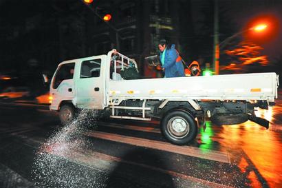 截至昨晚8時,僅在快速路上,我市有關部門就撒了百噸融雪劑。 “目前,我們已經完成了第一階段的工作,把快速路沿線都撒了一遍融雪劑。然后,等到凌晨3時左右,我們還會上路查看結冰的情況,并相應地撒融雪劑,消除路面結冰隱患。 ”工作人員說:“今天晚上,我們所有的清雪隊員全部在崗,保障島城的道路暢通。 ”昨天大堵車也給清雪工作帶來了一些麻煩。很多地方清雪車都無法及時到達。晚8時交通高峰期過后,清雪除冰工作速度進一步加快,道路交通狀況得到較大改善。