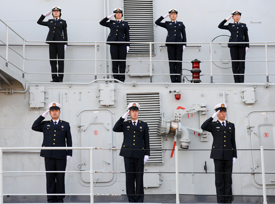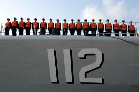 青島新聞網2月16日訊 16日,由北海艦隊112艦“哈爾濱”號、528艦“綿陽”號和887艦“微山湖”號組成的中國海軍第十四批護航編隊,從青島某軍港解纜起航,赴亞丁灣、索馬里海域執行護航任務。據了解,編隊含2架艦載直升機、數十名特戰隊員,共730余人。中國海軍執行護航任務4年多來,已派出了14批護航編隊,共為5046艘中外船舶實施了安全護航,成功解救、接護和救助了50余艘中外船舶。(記者 張力偉 攝)