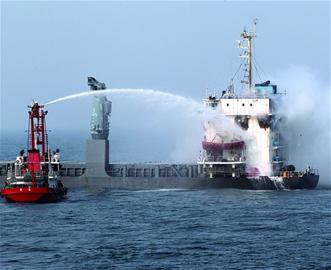 昨日凌晨3時許,“HUASHAN”輪冒著濃煙在海上漂浮,“北海救115”輪、“青港消2”輪、“青港拖14”船等海上救援力量全部到達現場。昨日上午9時,記者從“海巡11”輪傳回的實時畫面中看到,“HUASHAN”輪甲板上方生活區冒出滾滾濃煙,還伴有肆虐的明火。青島港兩條消防拖輪輪流對起火貨輪實施滅火降溫。
