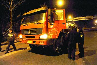 昨日凌晨1時,市垃圾管理處、交警、城管等部門在環灣路設卡,對駛出市區的大貨車逐輛檢查。至凌晨5時,檢查的14輛途經大貨車中,有半數大貨車存在車輛和駕駛人證件不全、不貼反光條等問題。